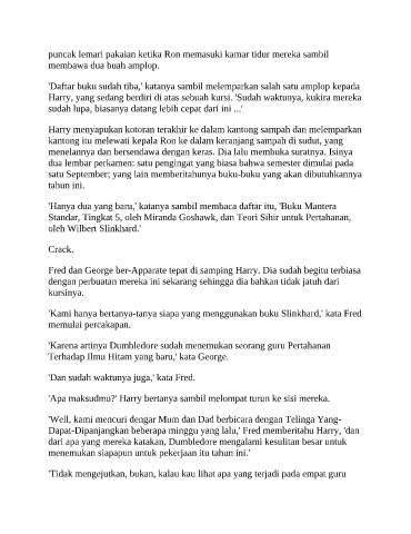 'Hanya dua yang baru,' katanya sambil membaca daftar itu, 'Buku Mantera