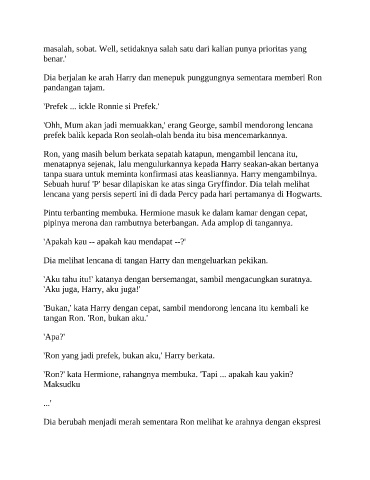 'Ron yang jadi prefek, bukan aku,' Harry berkata.