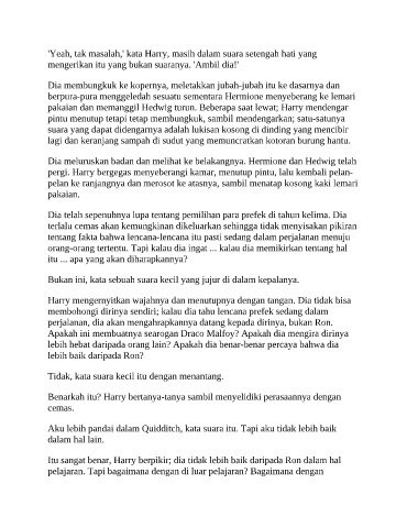 pakaian dan memanggil Hedwig turun. Beberapa saat lewat; Harry mendengar