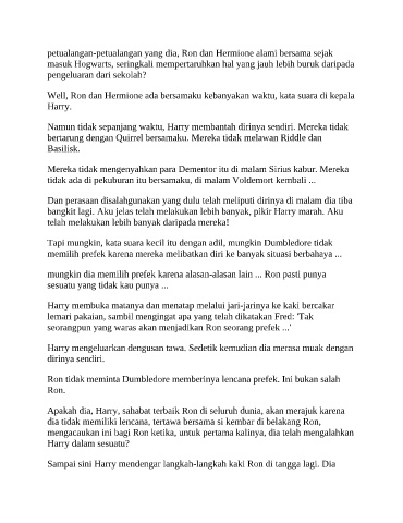 Sampai sini Harry mendengar langkah-langkah kaki Ron di tangga lagi. Dia