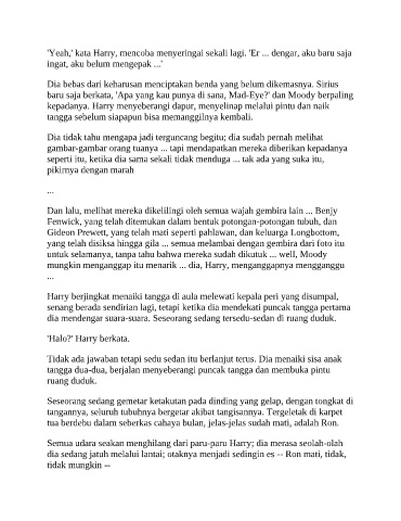 'Yeah,' kata Harry, mencoba menyeringai sekali lagi. 'Er ... dengar, aku baru saja