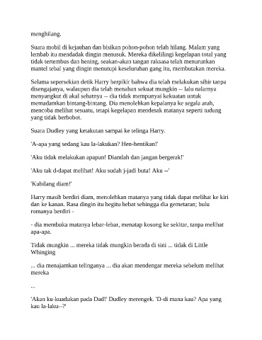 'Akan ku-kuadukan pada Dad!' Dudley merengek. 'D-di mana kau? Apa yang