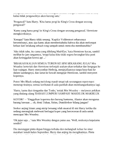 'Harry, kamu ikut denganku dan Tonks,' teriak Mrs Weasley -- melawan pekikan