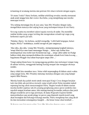'Dia sedang menunggu kita di atas sana,' kata Mrs Weasley dengan kaku,