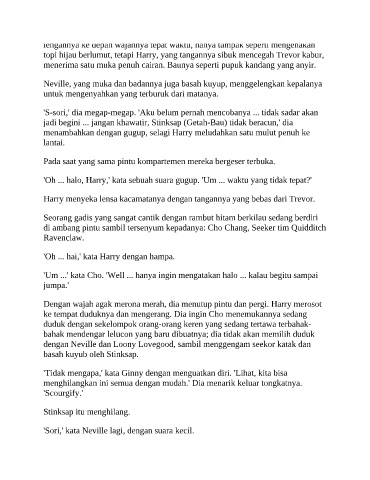 'Um ...' kata Cho. 'Well ... hanya ingin mengatakan halo ... kalau begitu sampai