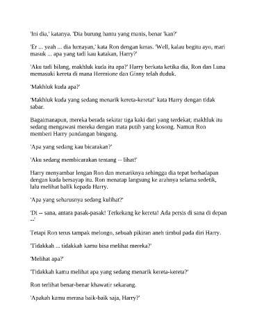 'Makhluk kuda yang sedang menarik kereta-kereta!' kata Harry dengan tidak