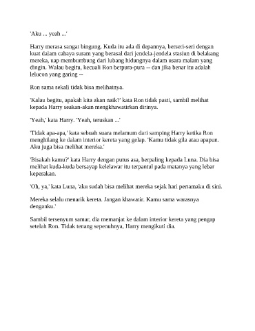 Harry merasa sangat bingung. Kuda itu ada di depannya, berseri-seri dengan