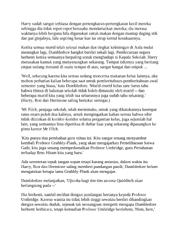 berhenti ketika semuanya berpaling untuk menghadapi si Kepala Sekolah. Harry