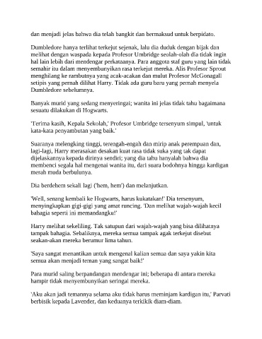 'Terima kasih, Kepala Sekolah,' Profesor Umbridge tersenyum simpul, 'untuk