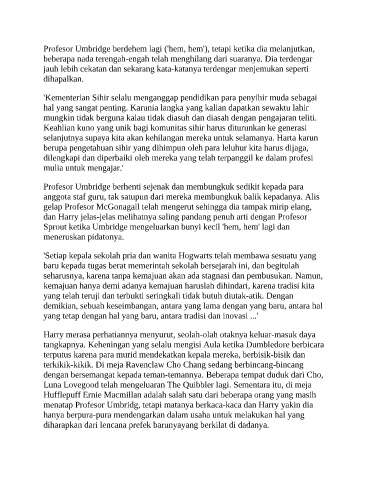 Profesor Umbridge berhenti sejenak dan membungkuk sedikit kepada para