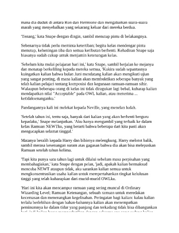 mana dia duduk di antara Ron dan Hermione dan mengabaikan suara-suara
