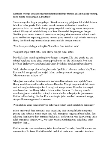 Harry sambil membalik-balik halaman Ramalan Mimpi tanpa minat. Mencari-