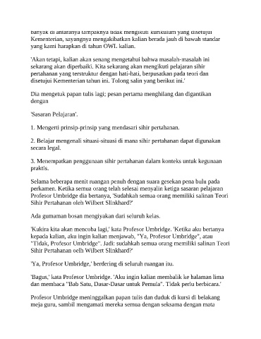 'Bagus,' kata Profesor Umbridge. 'Aku ingin kalian membalik ke halaman lima