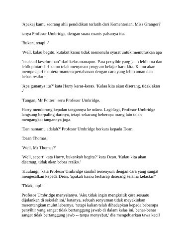 tanya Profesor Umbridge, dengan suara manis palsunya itu.