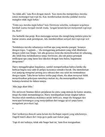 'Tentu saja mereka ingin bebas!' kata Hermione seketika, walaupun wajahnya