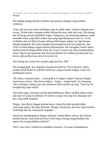 'Oh, Harry, ternyata kamu ... tentang Ron itu bagus, bukan?' katanya dengan