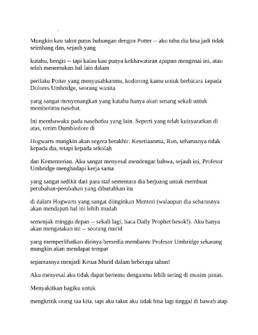 Mungkin kau takut putus hubungan dengan Potter -- aku tahu dia bisa jadi tidak