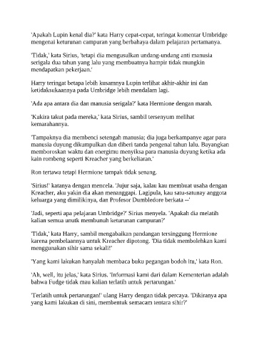 'Jadi, seperti apa pelajaran Umbridge?' Sirius menyela. 'Apakah dia melatih