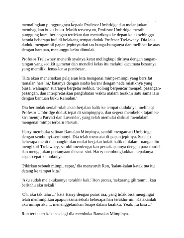 Profesor Trelawney menarik syalnya ketat melingkupi dirinya dengan tangan-