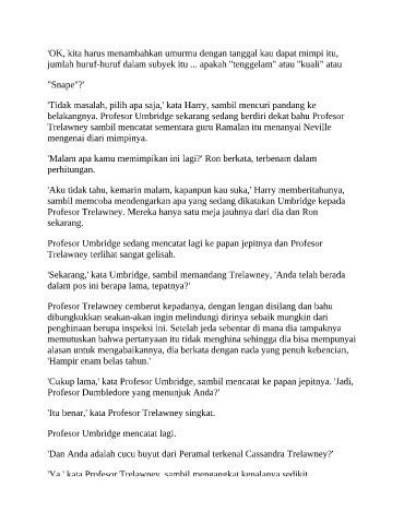 'Sekarang,' kata Umbridge, sambil memandang Trelawney, 'Anda telah berada
