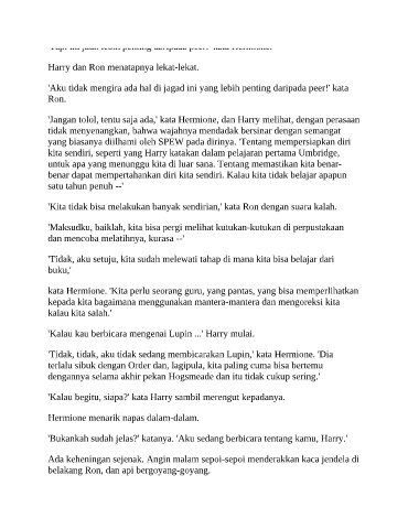 'Tidak, tidak, aku tidak sedang membicarakan Lupin,' kata Hermione. 'Dia
