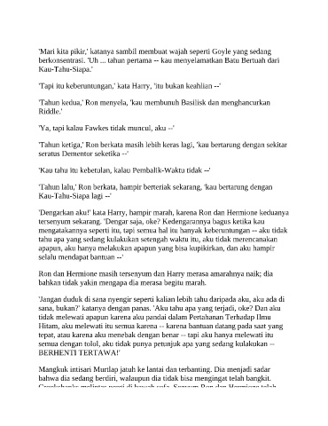 'Dengarkan aku!' kata Harry, hampir marah, karena Ron dan Hermione keduanya