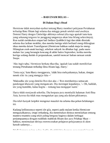 Harry tidak menjawab seketika. Dia berpura-pura membalik halaman Anti-Bisa