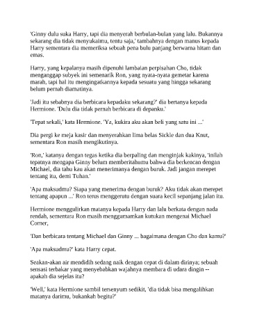 Hermione menggulirkan matanya kepada Harry dan lalu berkata dengan nada