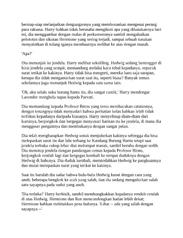 Dia menunjuk ke jendela. Harry melihat sekeliling. Hedwig sedang bertengger di