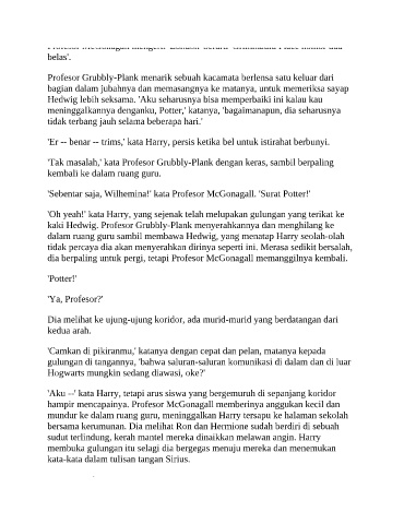 'Sebentar saja, Wilhemina!' kata Profesor McGonagall. 'Surat Potter!'