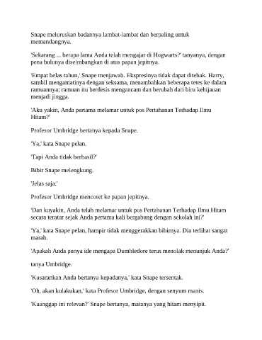 Snape meluruskan badannya lambat-lambat dan berpaling untuk