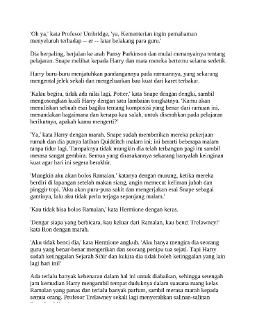 'Kalau begitu, tidak ada nilai lagi, Potter,' kata Snape dengan dengki, sambil