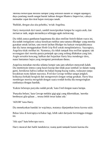 Harry menyentak dari tanah, sambil mencipratkan lumpur ke segala arah, dan