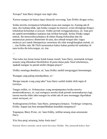 'Karena ruangan itu hanya dapat dimasuki seseorang,' kata Dobby dengan serius,