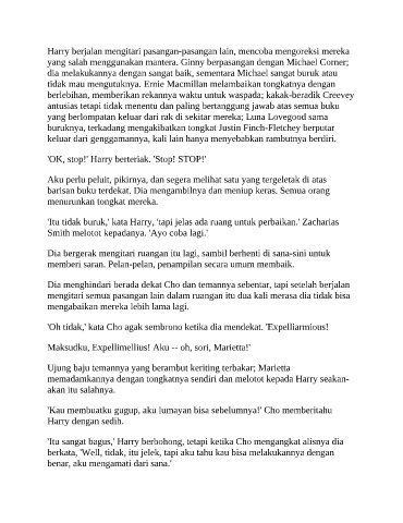 'Itu sangat bagus,' Harry berbohong, tetapi ketika Cho mengangkat alisnya dia