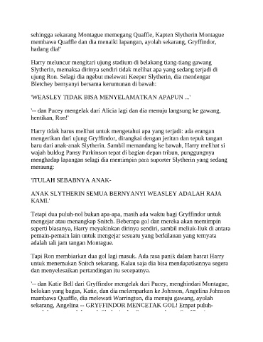 ujung Ron. Selagi dia ngebut melewati Keeper Slytherin, dia mendengar