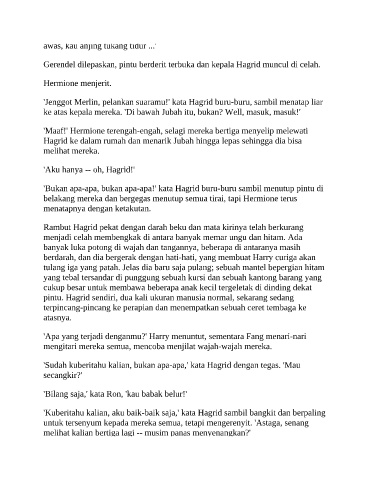 'Jenggot Merlin, pelankan suaramu!' kata Hagrid buru-buru, sambil menatap liar