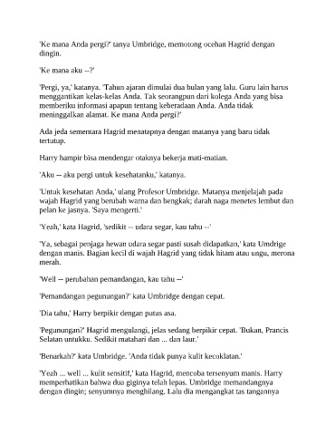 'Ke mana Anda pergi?' tanya Umbridge, memotong ocehan Hagrid dengan