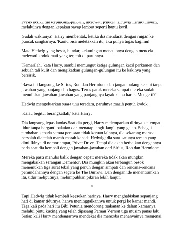Tapi Hedwig tidak kembali keesokan harinya. Harry menghabiskan sepanjang