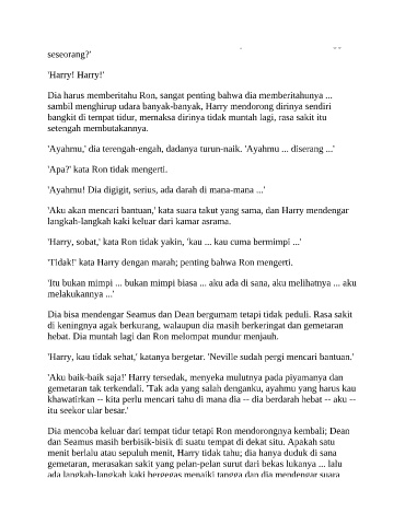 'Harry, kau tidak sehat,' katanya bergetar. 'Neville sudah pergi mencari bantuan.'