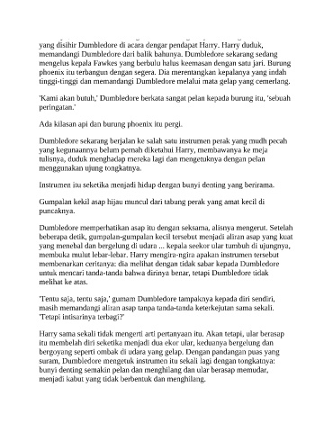 'Kami akan butuh,' Dumbledore berkata sangat pelan kepada burung itu, 'sebuah