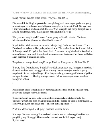 'Harry -- apa yang terjadi?' tanya Ginny, yang terlihat ketakutan. 'Profesor