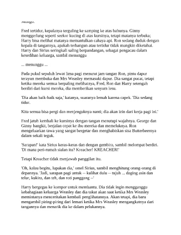 Fred tertidur, kepalanya terguling ke samping ke atas bahunya. Ginny