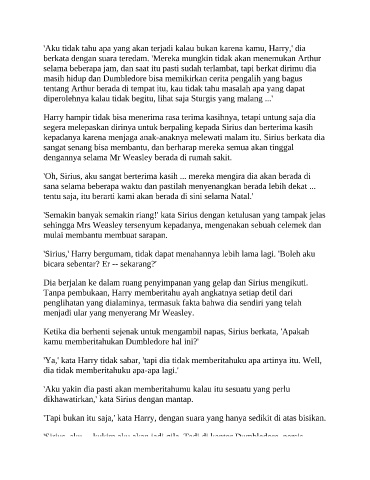 'Sirius,' Harry bergumam, tidak dapat menahannya lebih lama lagi. 'Boleh aku