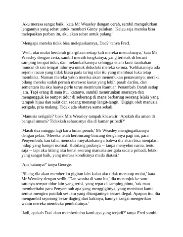 'Manusia serigala?' bisik Mrs Weasley tampak khawatir. 'Apakah dia aman di