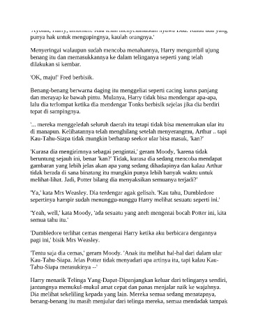 lalu dia terlompat ketika dia mendengar Tonks berbisik sejelas jika dia berdiri