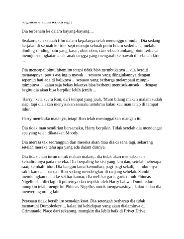 'Harry,' kata suara Ron, dari tempat yang jauh, 'Mum bilang makan malam sudah