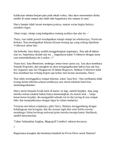 Harry mulai berjalan bolak-balik di kamar itu lagi, sambil berpikir. Apa yang