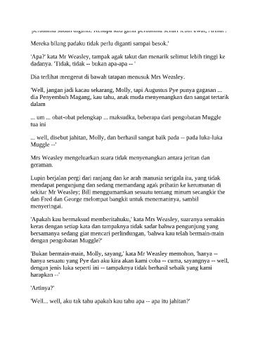 'Apakah kau bermaksud memberitahuku,' kata Mrs Weasley, suaranya semakin