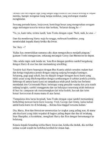 Dan dia mendorong Harry maju ke tangga, melewati kondektur, yang